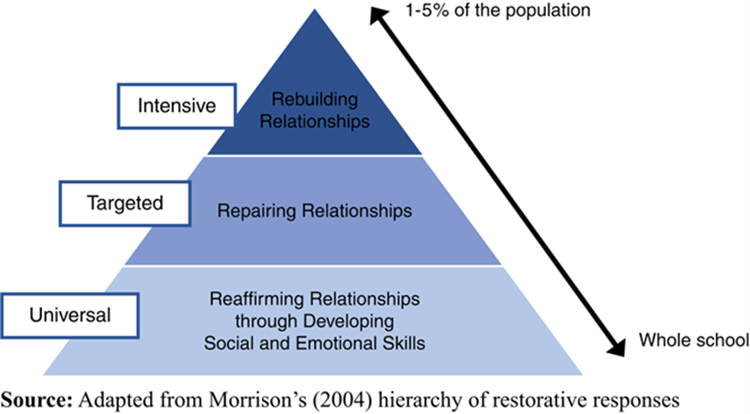 Morrisons hierarchy is used to demonstrate that rebuilding relationships/resolving conflict is only the tip of the iceberg of restorative approaches and that much larger areas are repairing and developing relationships.