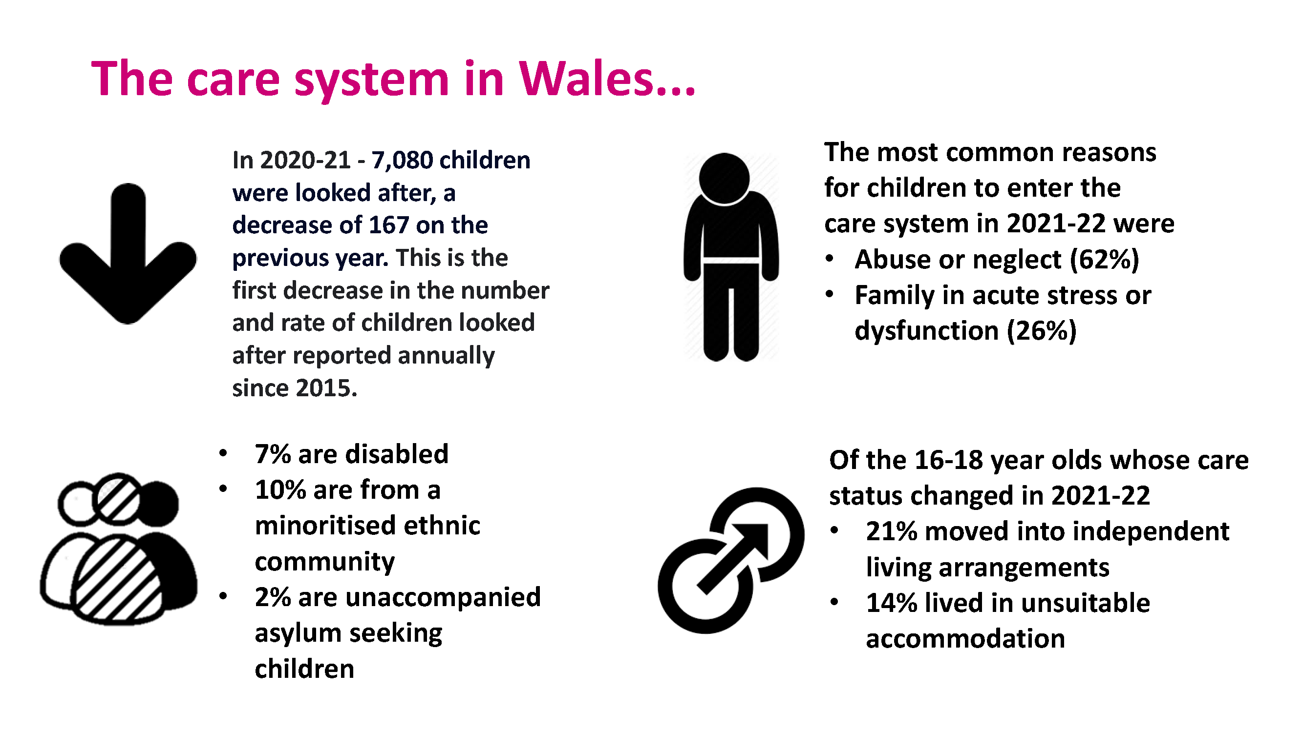 For a more detailed insight into the children’s care system, see Care Inspectorate Wales’ National Overview Report in relation to care experienced children and young people.